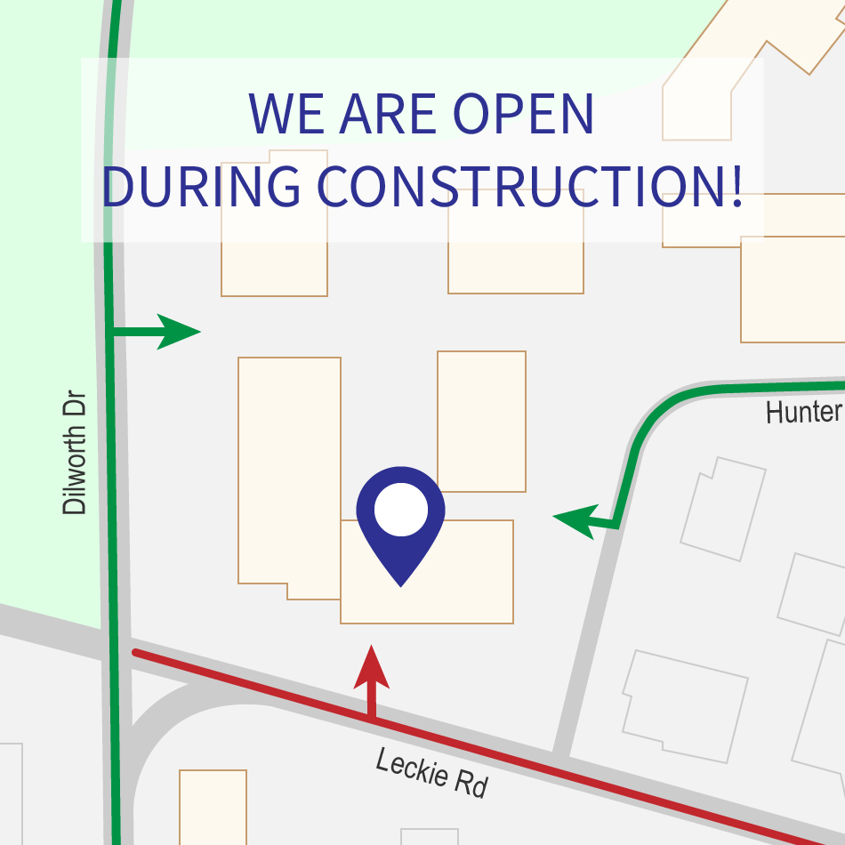 We are open during construction! Please visit our back door for showroom access, or give us a call to let us know you're here.